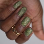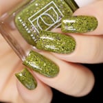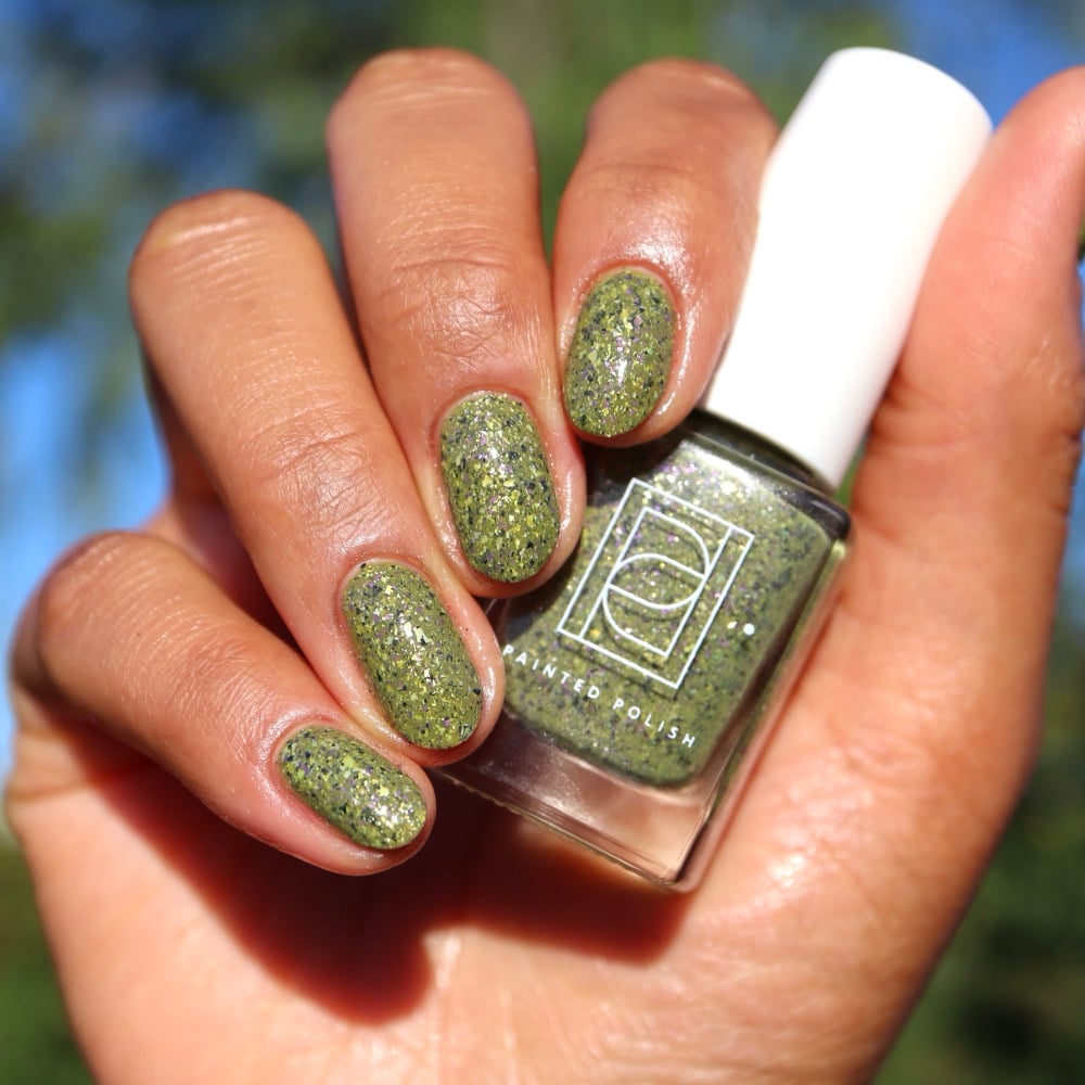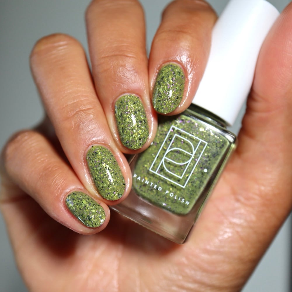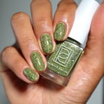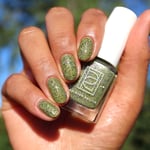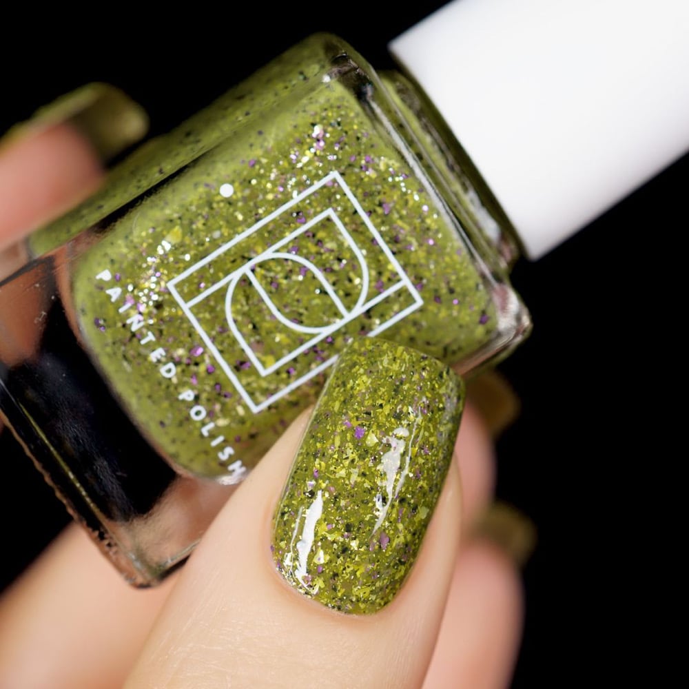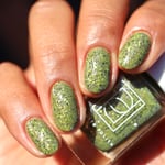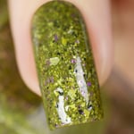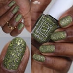 This shade features silver, black and purple metallic flakies in an olive green crelly base!