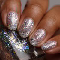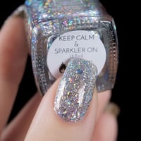 ‘Keep Calm & Sparkler On’ features a variety of silver holographic glitters in a clear base! It can be used as a fun topper or built up for full coverage! 🧨🧨🧨