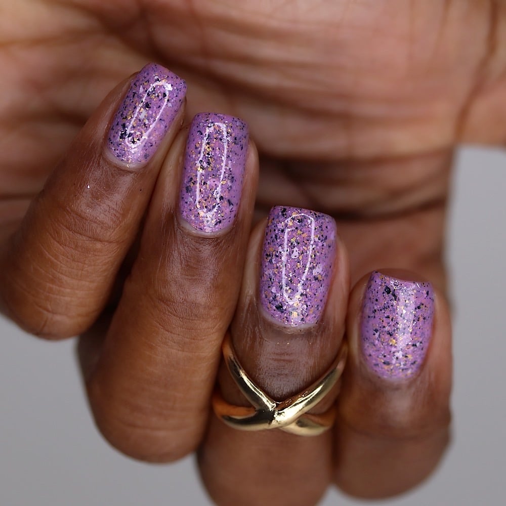 This shade features gold, silver and black metallic flakies in a light Opera mauve crelly base! 💜🪨