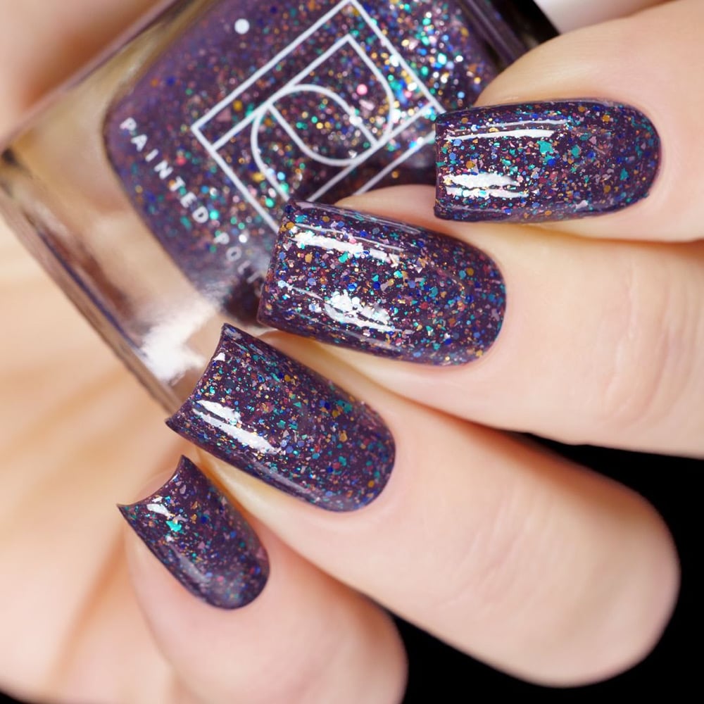 ‘Mystery Crelly Trente-Quatre’ is now revealed! It features a stunning flakie and glitter mix in a purple taupe crelly base! ❄️❄️❄️