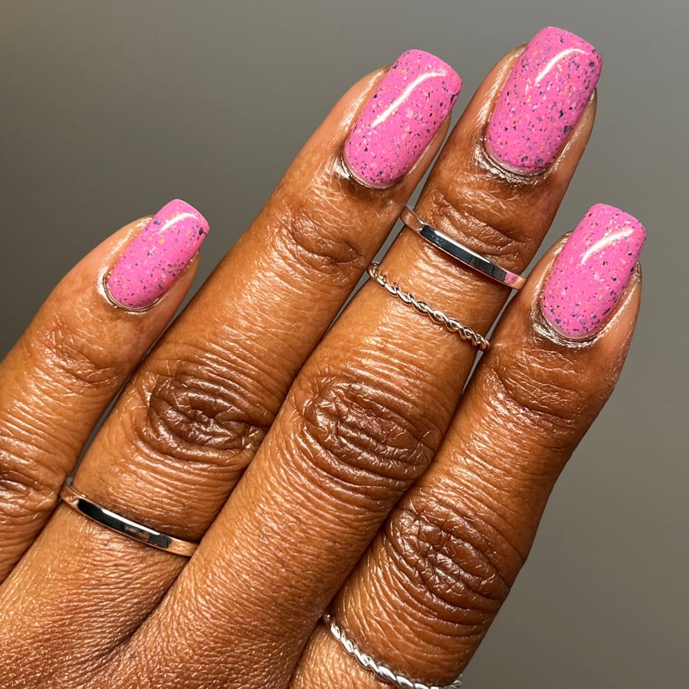 Our newest collection is turning sweet into savage with rebellious pinks laced with black, gold and silver flakies! The ‘Pretty In Punk Quartet’ is sugar, spice, and just a little mischief. 💖⚡️