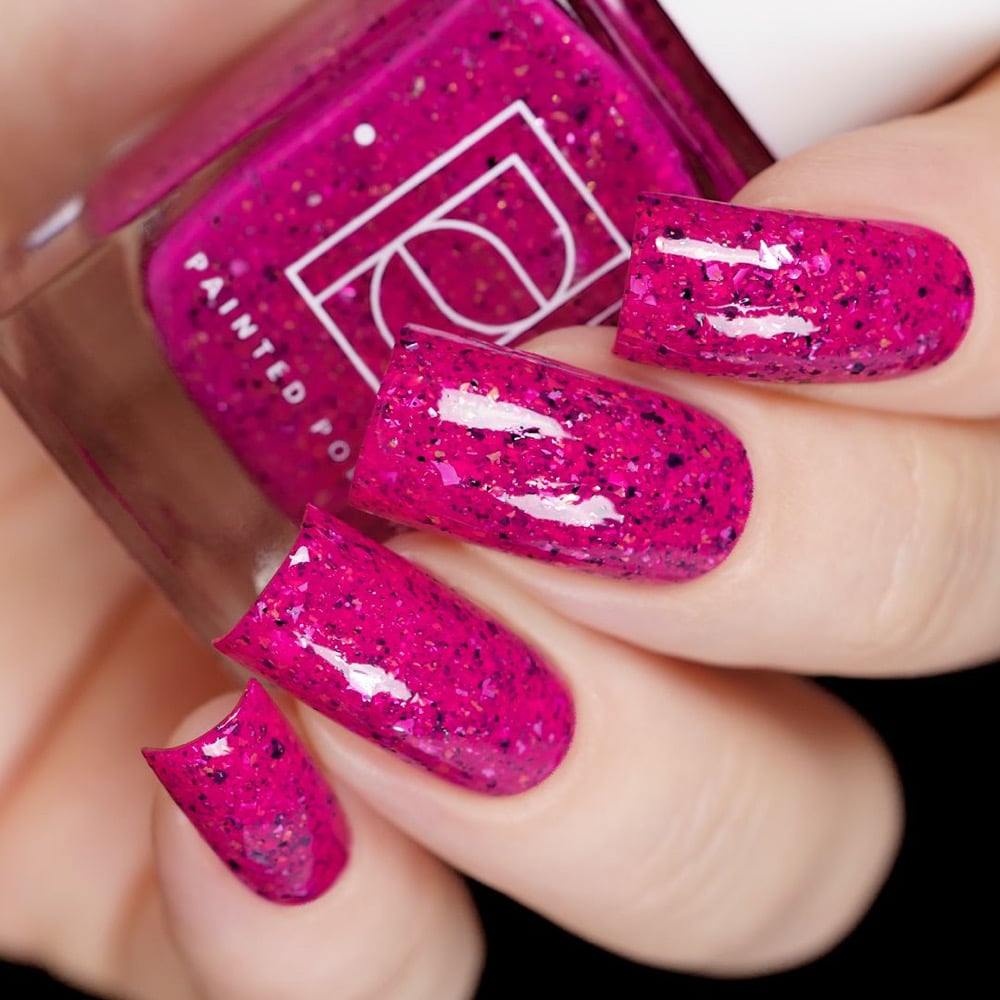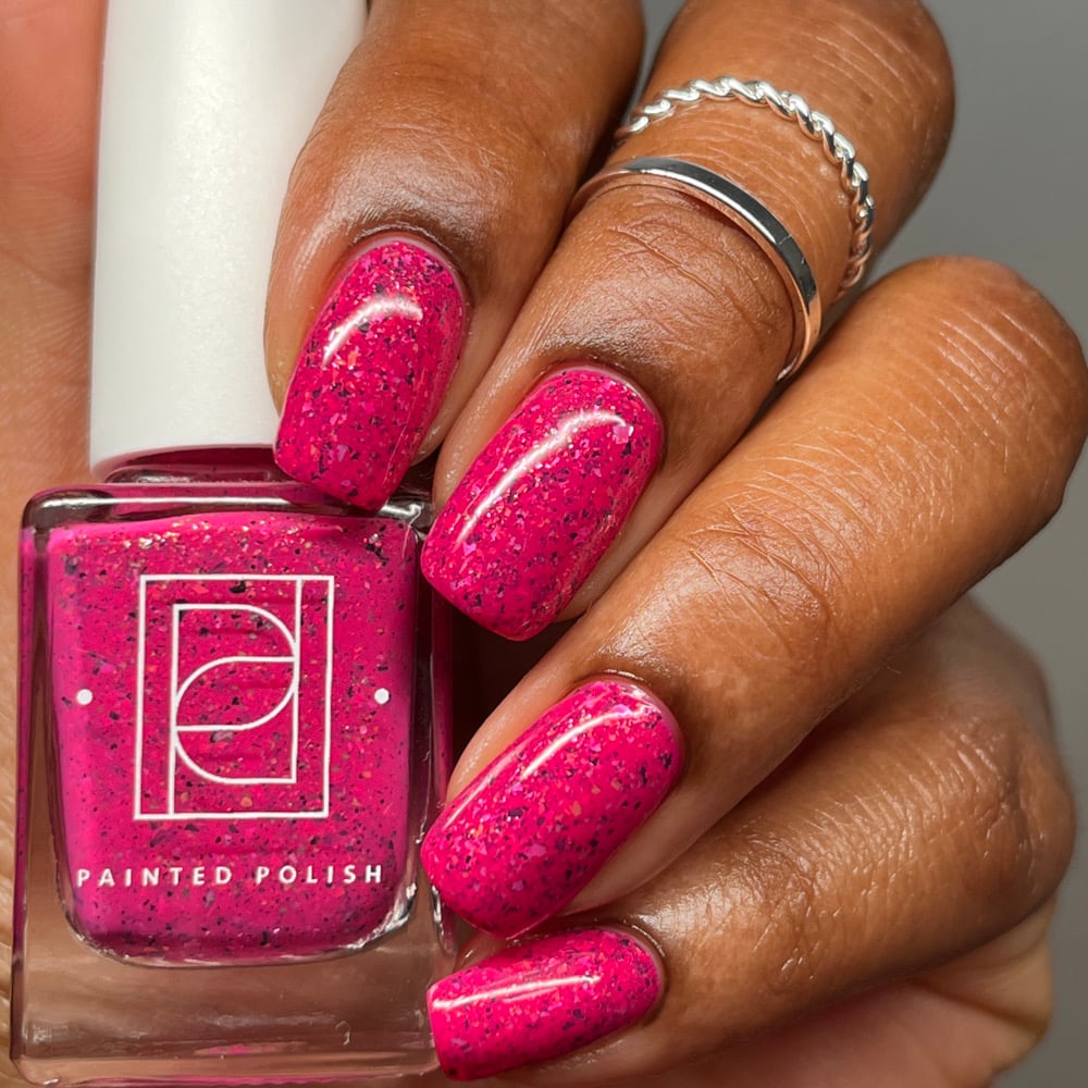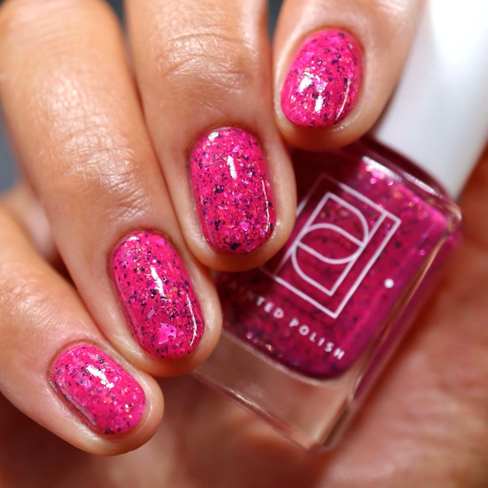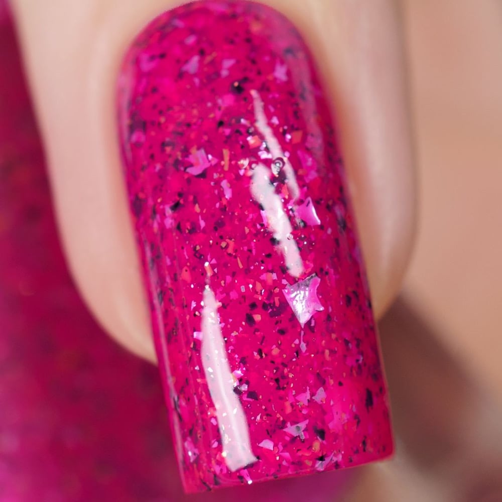 Black, gold, and silver flakies bring the sparkle in a raspberry pink crelly base! Sheโs not madโฆ just vibing chaotically. ๐ ๐ค